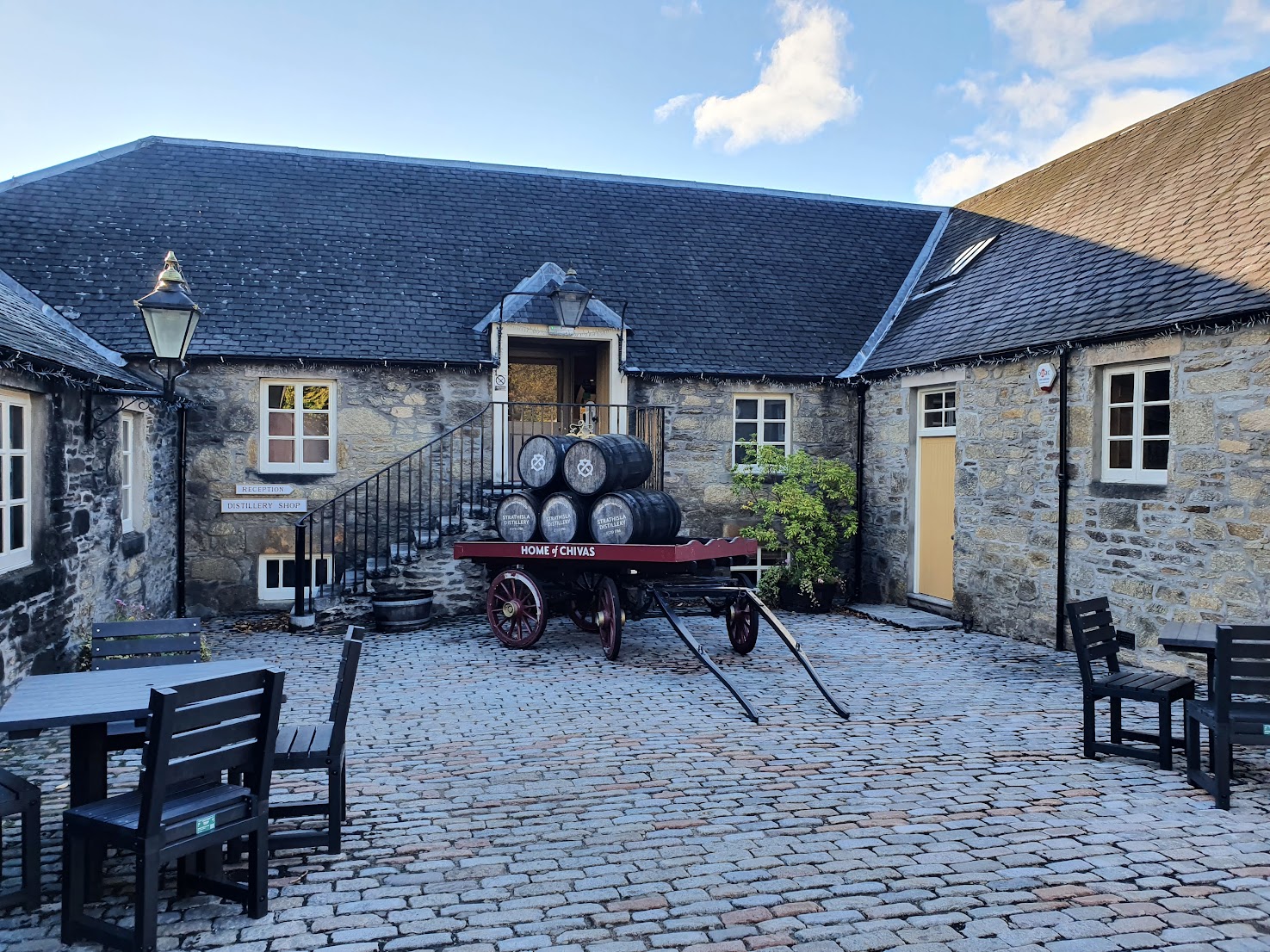 Daniel’s friend from New Zealand is visiting us for the weekend again and we wanted to take him to Glenfiddich Distillery for lunch and a tour today. Glenfiddich is the only distillery I’m aware of that lets children accompany adults on tours; however, despite their website and social media accounts and even their answering machine all saying they were open, they were actually closed due to a “Dramathon”, which is some kind of marathon around the distilleries in Dufftown.