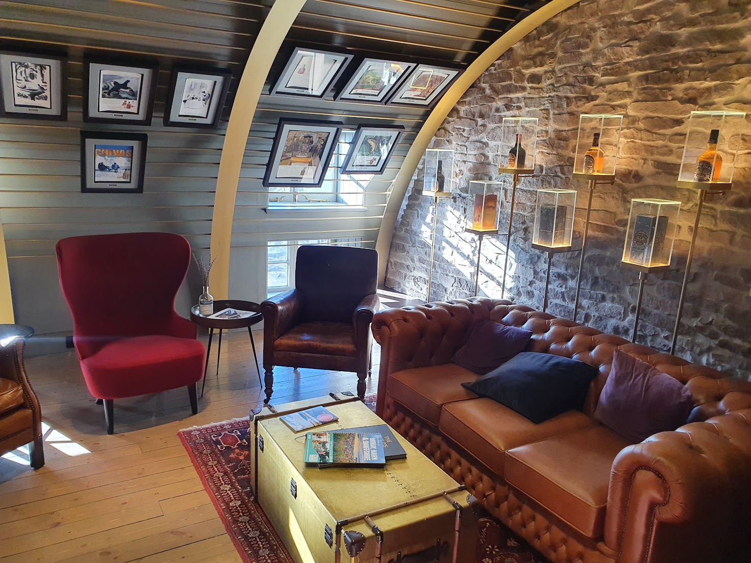 Just up the road from Glenfiddich is the Macallan distillery which I’ve not visited before. The Macallan visitor centre is unlike any other as it’s very modern in a large cathedral-type structure made from timber and steel that forms an undulating roof covered in turf. It’s quite striking and the large glass windows overlook a very pretty view of rolling hills.