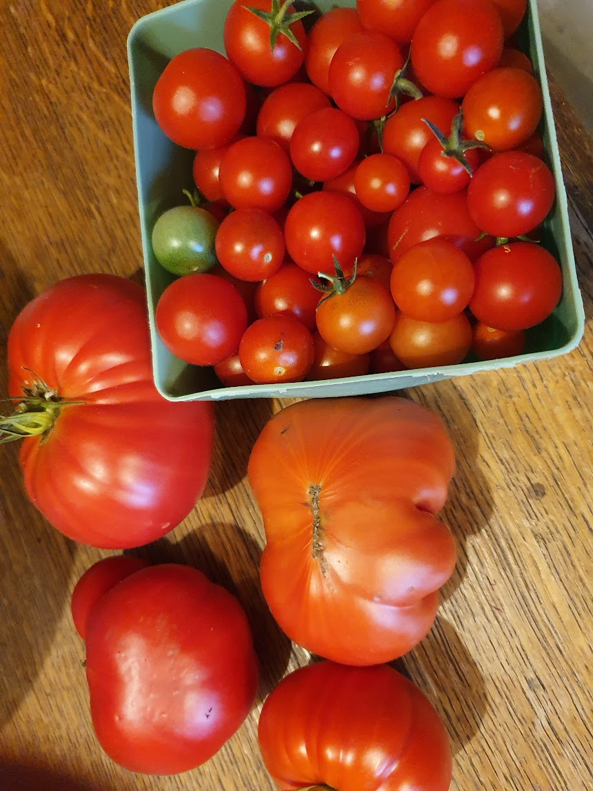 My tomatoes are just about dead but there are still a few fruits ripening. Two weekends ago I picked this from the greenhouse.