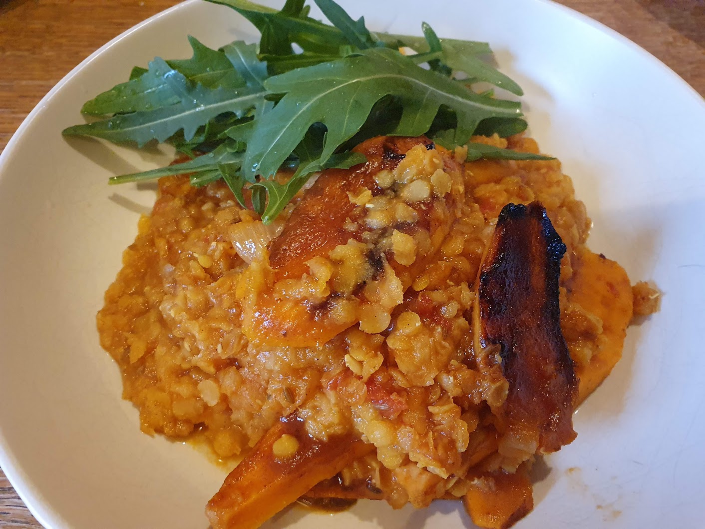 All the recipes are vegetarian and those that are not vegan have a vegan alternative. It’s unlike other cookbooks in that the recipes contain unusual combinations of ingredients. For instance, there’s a potato bake with rhubarb – a savoury dish. I’ve only ever cooked rhubarb as a dessert. There’s a delicious dahl with sweet potato and tamarind. Usually tamarind requires a bit of sugar because it’s so sour but the sweet potato provides the sweetness and no sugar is required. I made this one on the weekend.