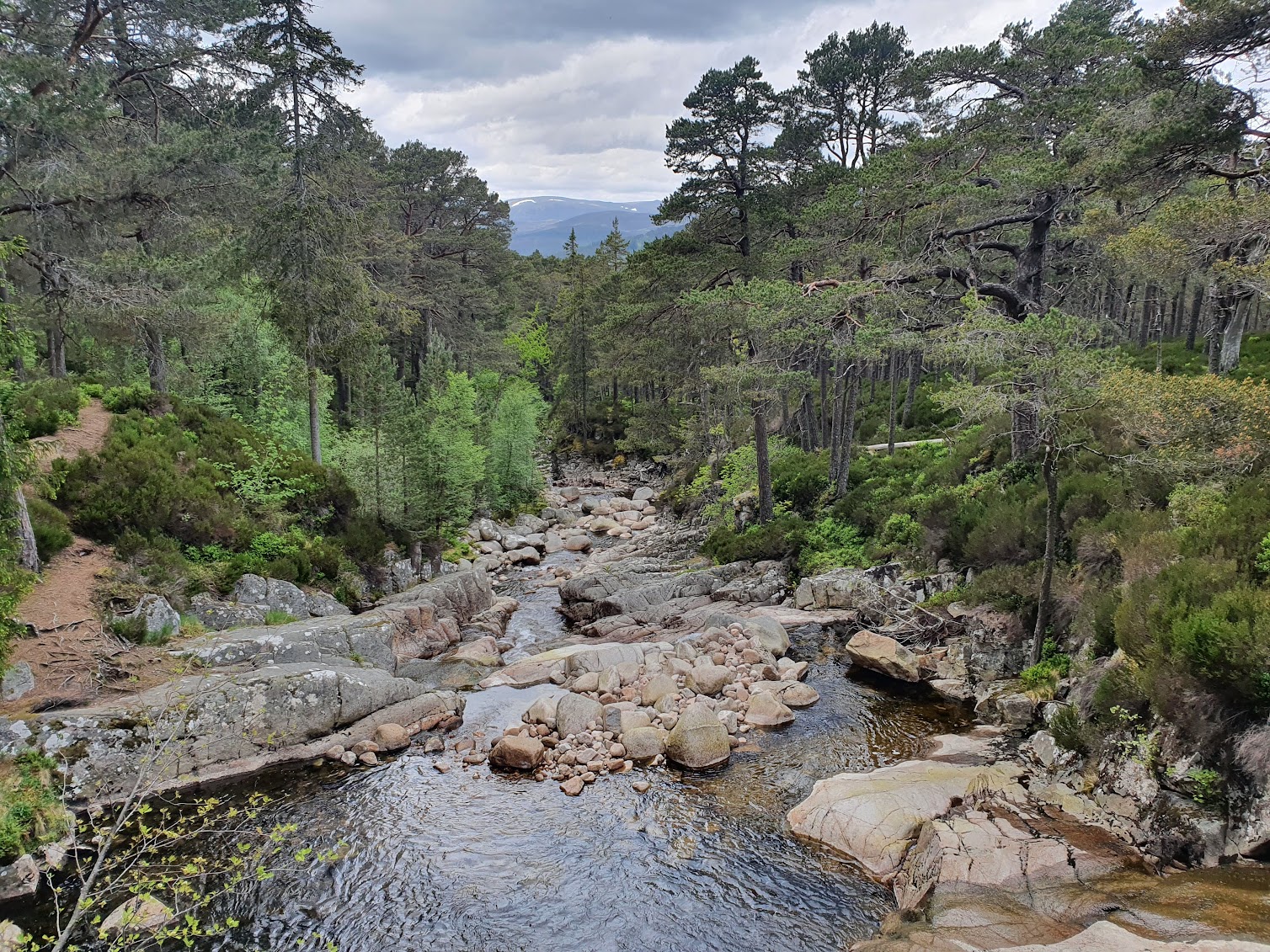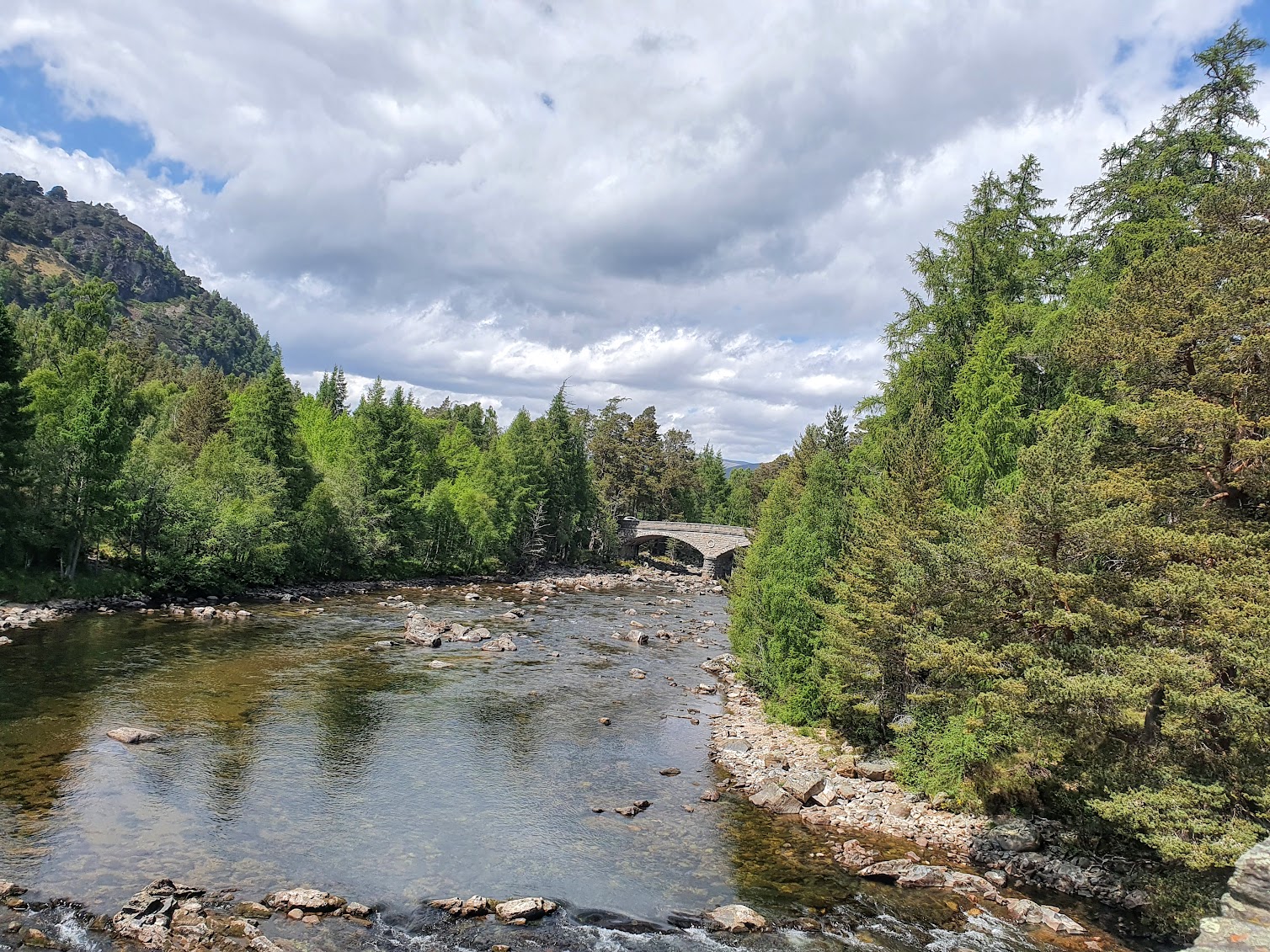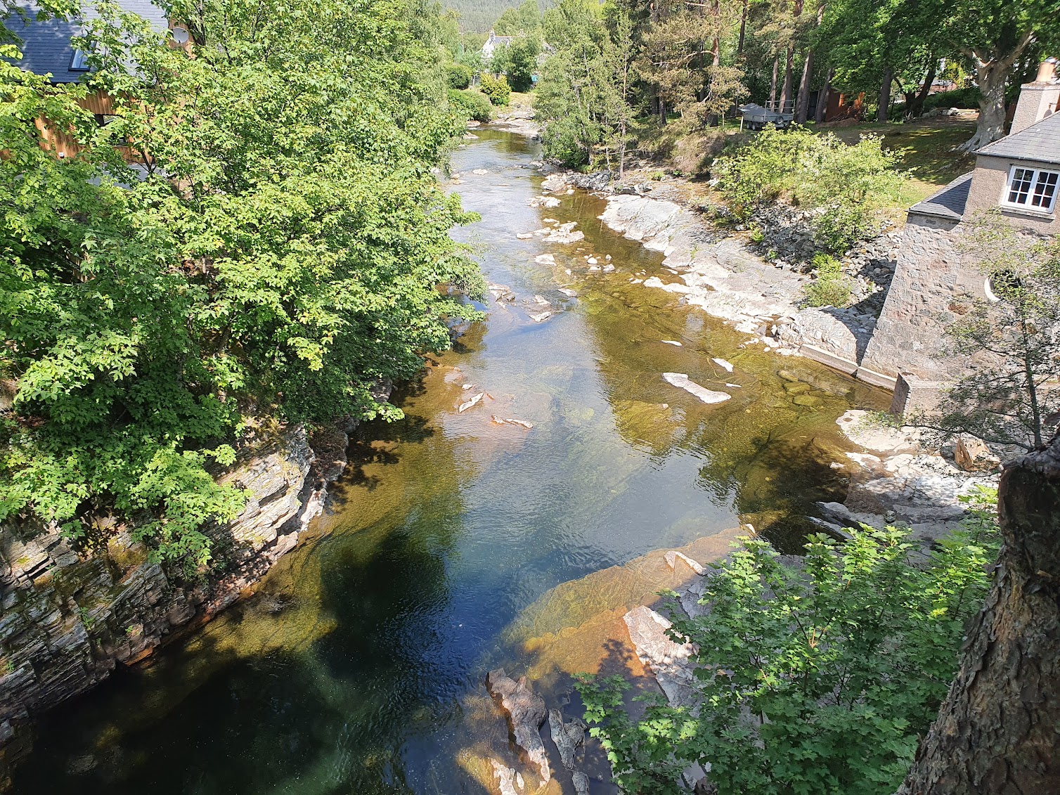 We’re just back from a tremendous day in the Cairngorms with Grandad. First was an early lunch at the Bothy which overlooks the Clunie River so you can sit outside and eat your lunch right next to this. We swam in it last year.