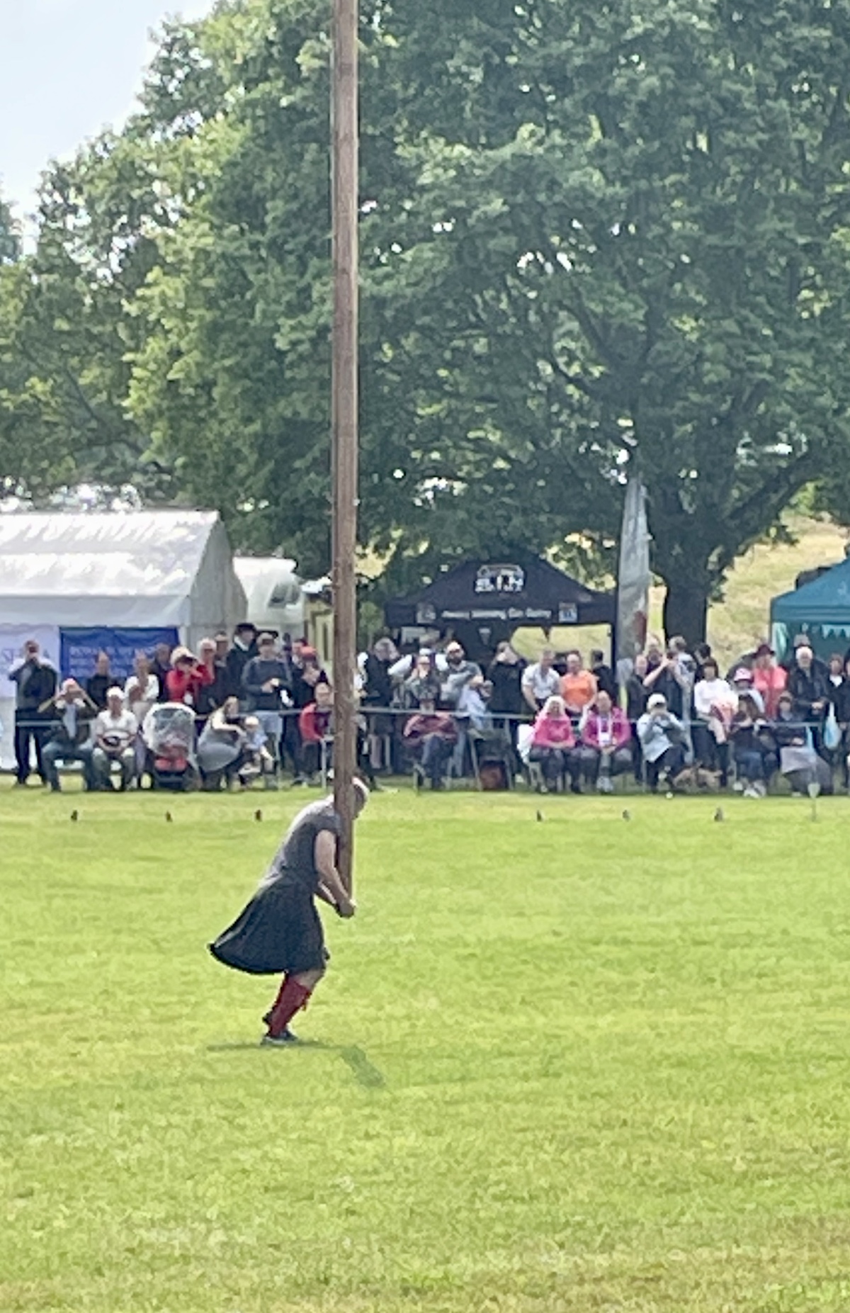 We gave Grandad a true Scottish experience today at the Strathmore Highland Games at Glamis Castle. There was highland dancing – which Elizabeth participated in – caber tossing, stone throwing, running, cycling, tug-of-war, and various other heavy weight competitions including ones I’d never seen before like throwing beer barrels and carrying whopping great hunks of rock.