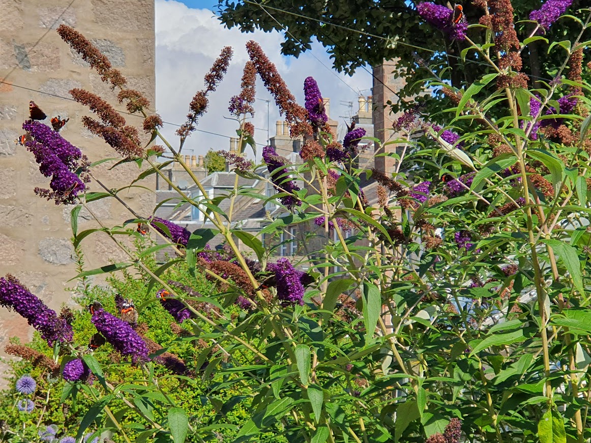 We’ve had so many insects including butterflies and bees in our garden this year. The warm weather along with plenty of rain has helped. Plus I’m hoping my better understanding of how to create habitat for little beasties is paying off. I took this photo last month of the butterfly-loving buddleia in our garden. I counted more than 20 butterflies as I took the photo although some aren’t in the shot but if you look closely you should count at least a dozen there.