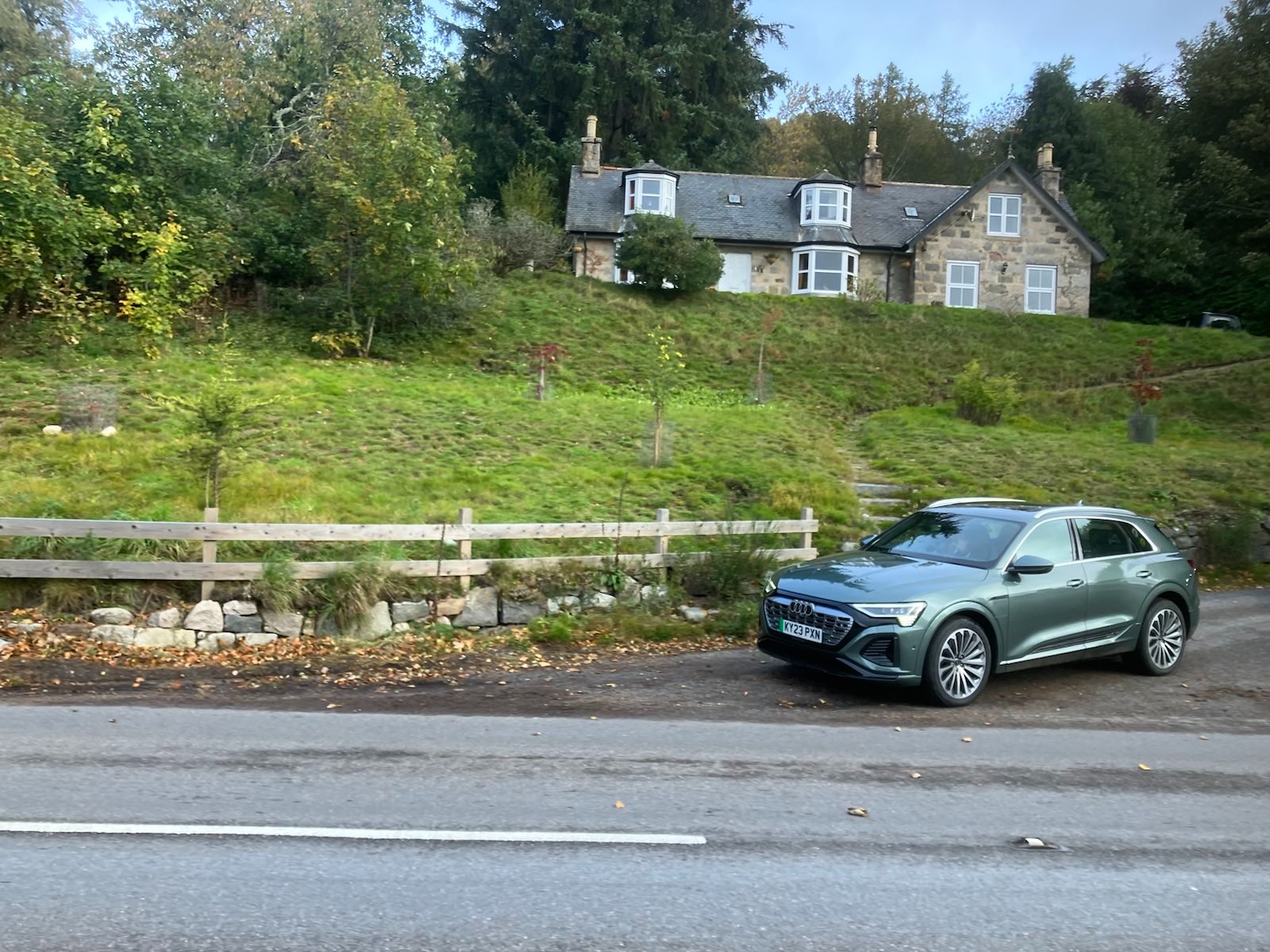 King Charles drove himself away. We weren’t allowed to take photos but you couldn’t see that much anyway and it was only fleeting. Mum stayed down on the main road where you could take photos and she took this photo as he drove past while waving at her. He must have known it was her visit visit to Scotland in more than four years. You can just make out the waving hand in this next pic.