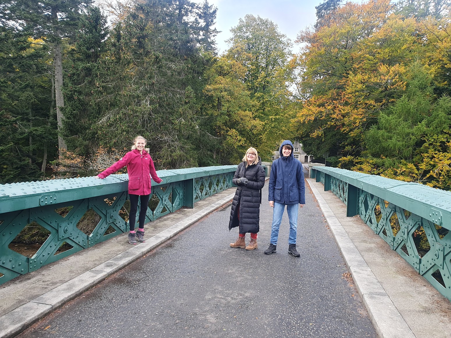My mother is visiting from Australia which is extra special because it has been more than four years since we last saw her. Today we drove out to Braemar in celebration for lunch and a walk. As we drove past Crathie we saw lots of people gathered and realised the King was about to leave his Sunday morning church service at Crathie Kirk so we decided to stop. This is the bridge over to Balmoral Castle.