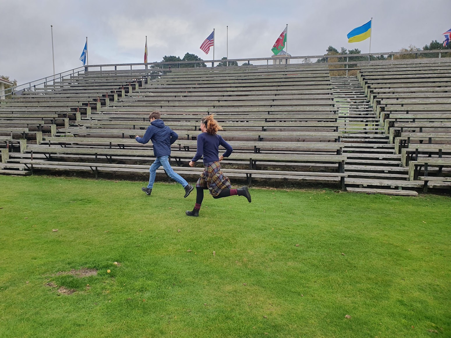 Daniel and I raced around the games park and he was ahead for most of the way until I made a dash at the end and overtook him. Although he thinks he still won so it’ll have to go to a photo finish.