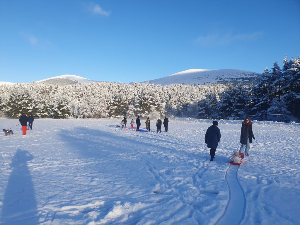 Today was a glorious day in the highlands with the landscape coated in fluffy, white snow with a clear blue sky and some sun. We spent the day tobogganing and walking around Loch Morlich. Here are some photos.