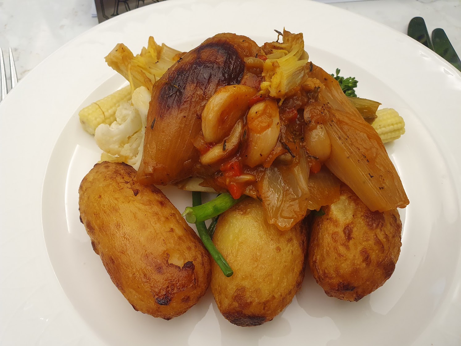 The real highlight was the food which was excellent. The chef made me a bespoke vegan dish since they didn’t have anything on the main menu and it was delicious. The veggies were done to perfection with just the right amount of softness and the potatoes a perfect combination of crispy on the outside, soft and mashy on the inside. I had braised celery and shallots – it was full of flavour.