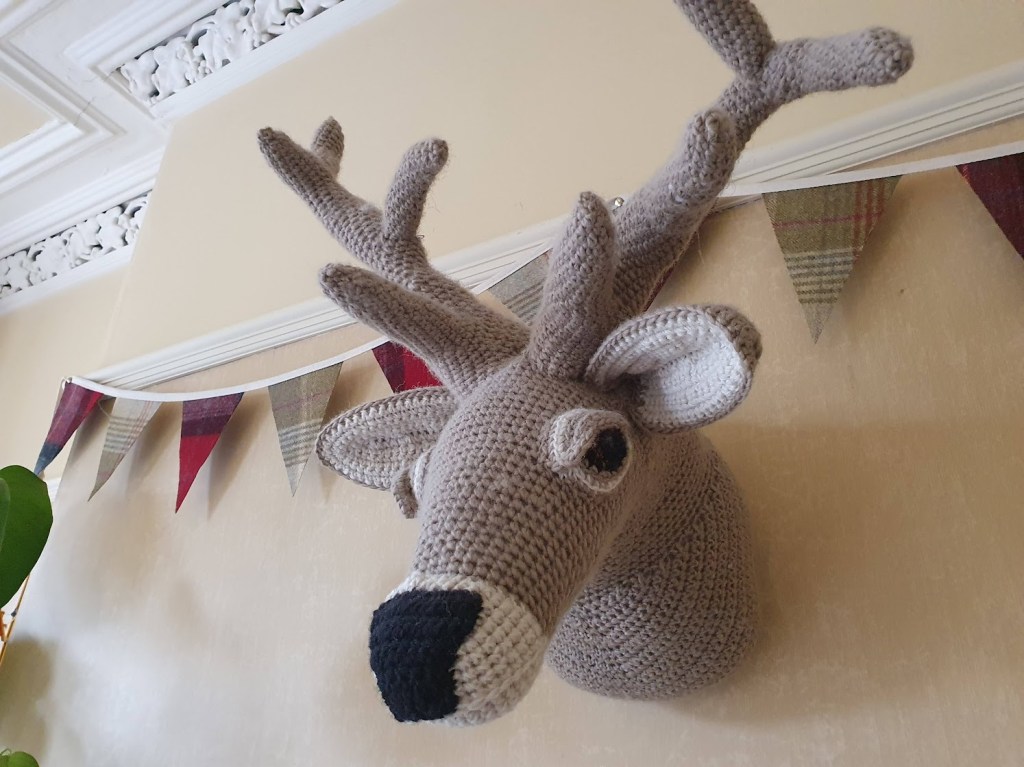 Today I finished Howard, the latest addition to my collection of crochet animal heads. He’s a highland cow in case you can’t tell. The tufts of fur on his heard are real highland cow fur which we collected from a fence at Crathes Castle over a year ago. The fur has been sitting in a pile in the laundry patiently waiting for Howard to come into existence. I washed it first.