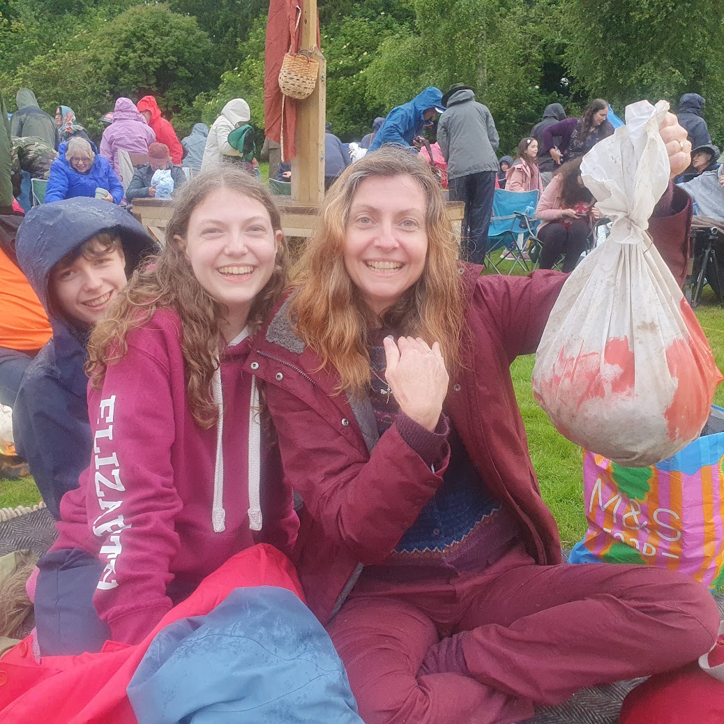 We always sit on a picnic rug right at the front and possibly due to the rain there were fewer people doing this with most others bringing their own chairs. This meant we were used in the show more often than usual. Let’s see – I had a chamber pot emptied on top of me, Jane Seymore’s bra tossed at me as well as a severed head – I can’t remember who it belonged to as many people were beheaded. Katherine Howard flirted with Ben while Charles Brandon, Duke of Suffolk, took refuge under one of our coats to hide from Thomas Cromwell. It was laugh-out-loud funny from start to finish.