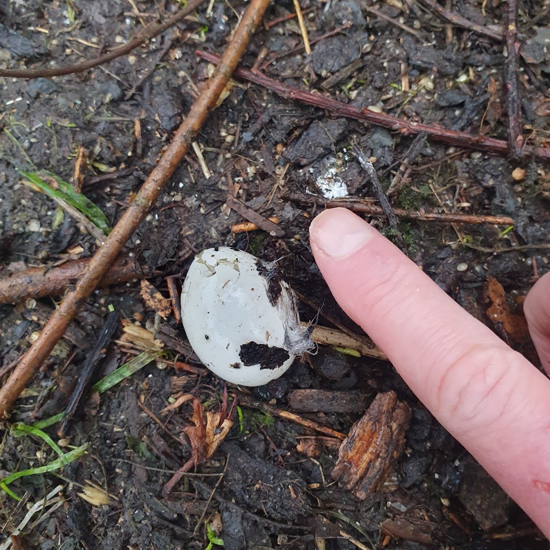 I found a bird’s egg on the ground last week beneath the feeders. Something had eaten the contents. I think it belongs to a pigeon or wood pigeon. Apparently they lay eggs in the winter sometimes.