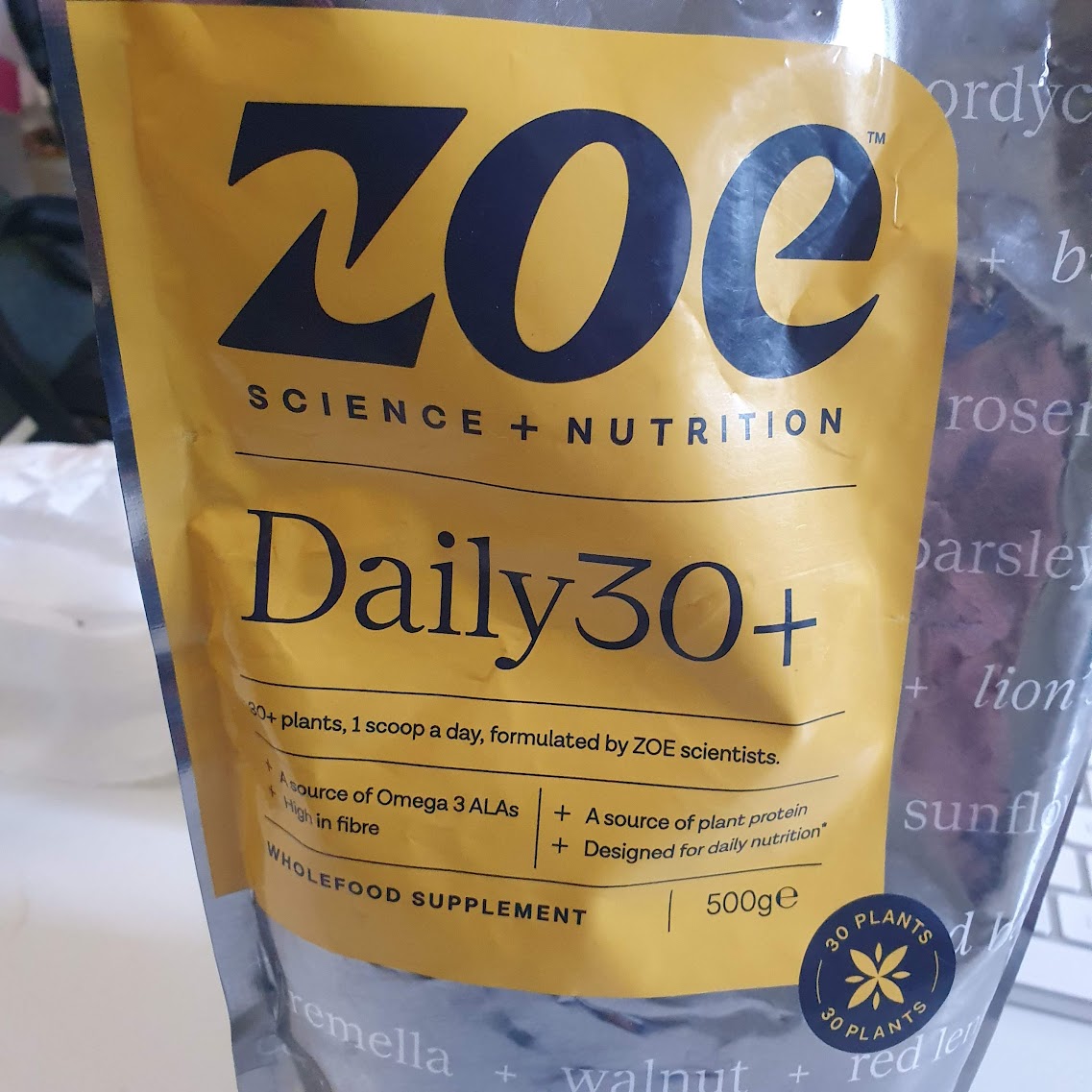 This week I’ve been trying a prebiotic made by Zoe called the Daily 30. What’s unique about it is it’s not a powder or tablet because when you crush a plant into powder it changes the plant’s cell structure which can reduce the benefit you would have otherwise got from it. Instead the Zoe Daily 30 consists of 30 different plant species that you sprinkle on food. It looks like this.