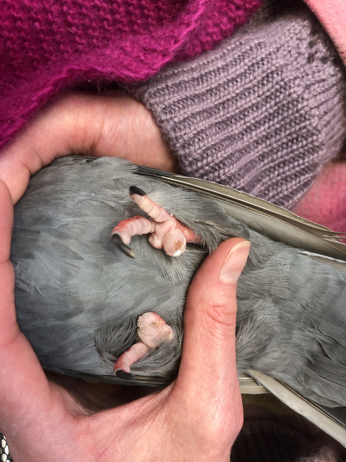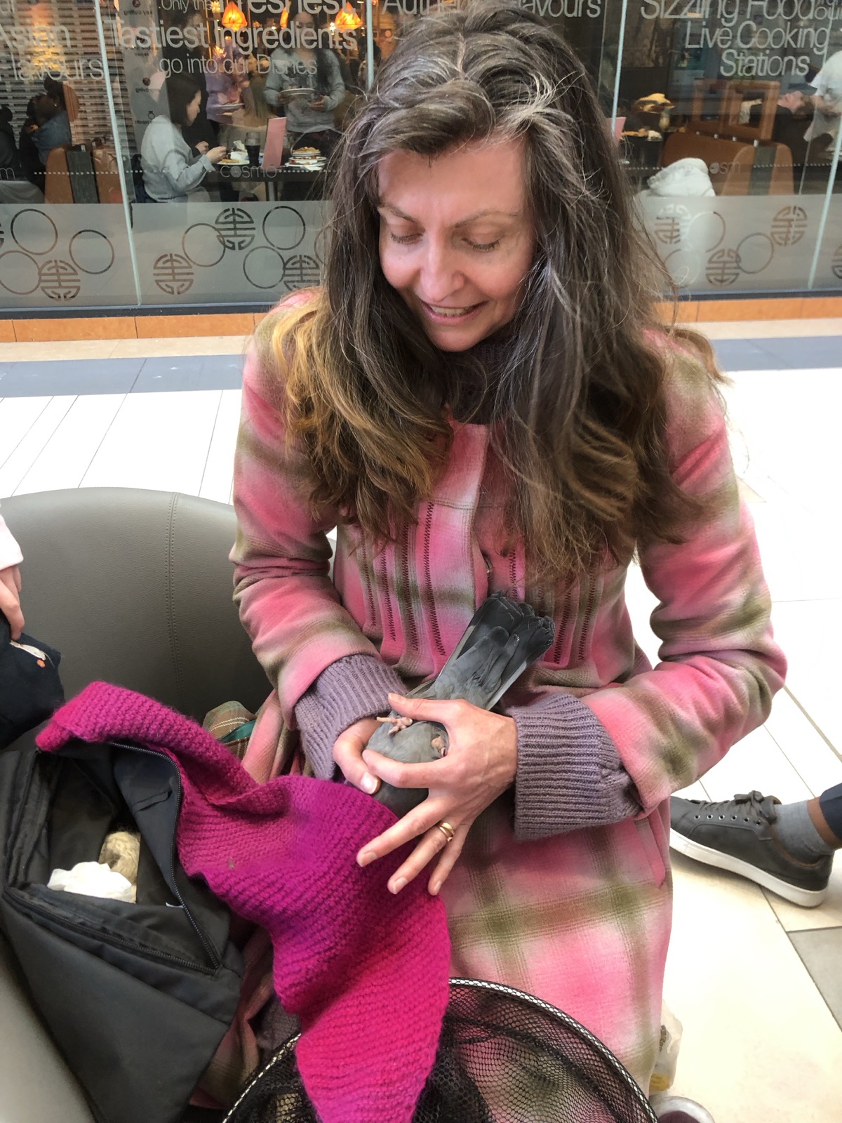I managed to catch another pigeon at Union Square today. It wasn’t the one with his legs tied together unfortunately: I haven’t seen this one for a while now. But the one I caught only had three toes left so I’m glad we removed the string so he doesn’t lose the remainder.